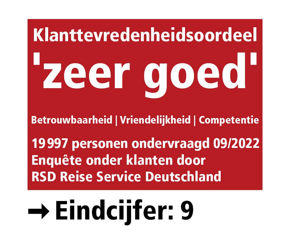 De combinatie van reisdiensten die u wordt aangeboden, is een pakketreis in de zin van Richtlijn (EU) 2015/2302. Bijgevolg kunt u aanspraak maken op alle EU-rechten die voor pakketreizen gelden. Onderneming RSD Reise Service Deutschland GmbH is ten volle verantwoordelijk voor de goede uitvoering van de volledige pakketreis. Onderneming RSD Reise Service Deutschland GmbH beschikt ook over de wettelijke verplichte bescherming om u terug te betalen en, indien het vervoer is inbegrepen in de pakketreis, te repatriëren ingeval zij insolvent wordt/worden.